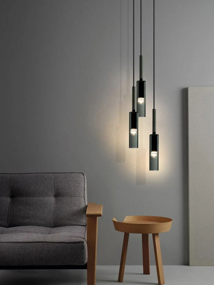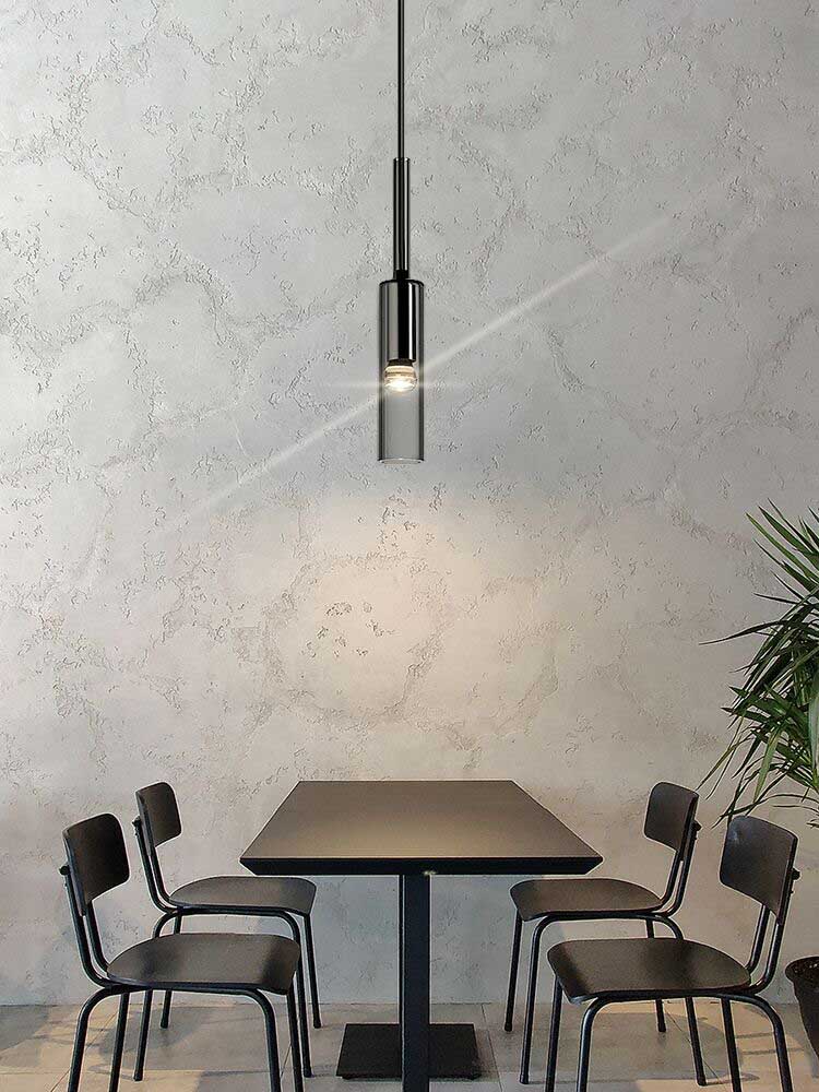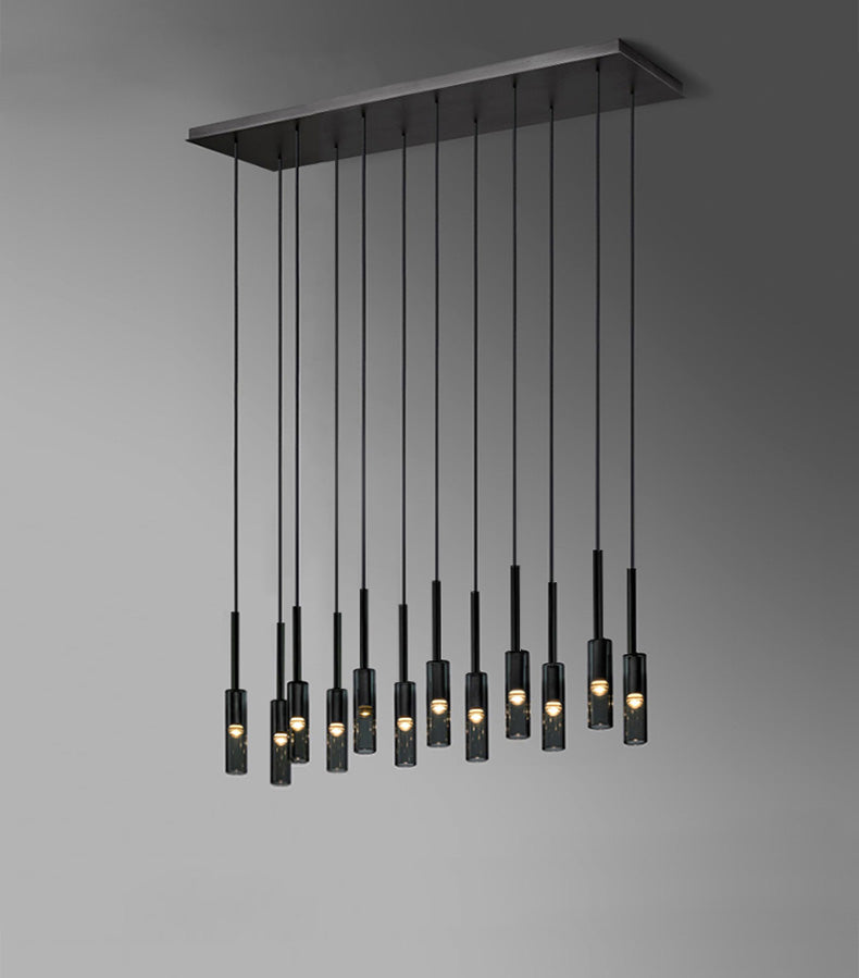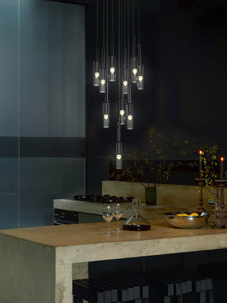 Inspired by French black minimalist lighting of the 1970s, elegant design features a hollow black glass form 3 Lights Spiral Chandelier suspended from a slender black cord. An inset LED at the tip offers warm, glowing light. Placing this cluster black cylinder chandelier in your kitchen is an easy way to bring a feeling of beauty and sophistication into your home.