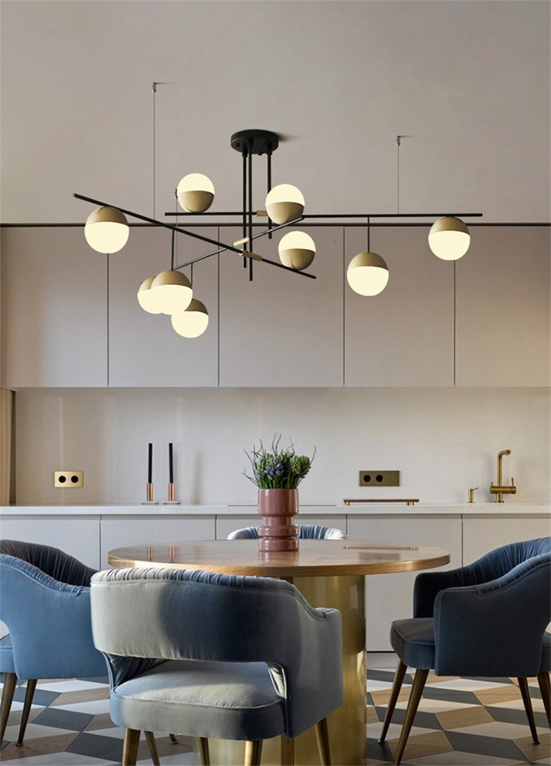 Glass Ball Balance Chandelier brings mid-century design elements into the present day for fresh, contemporary furniture and decor.