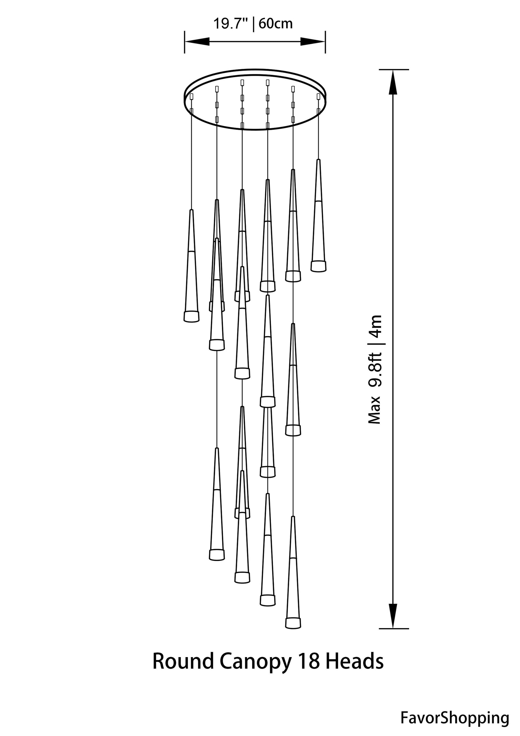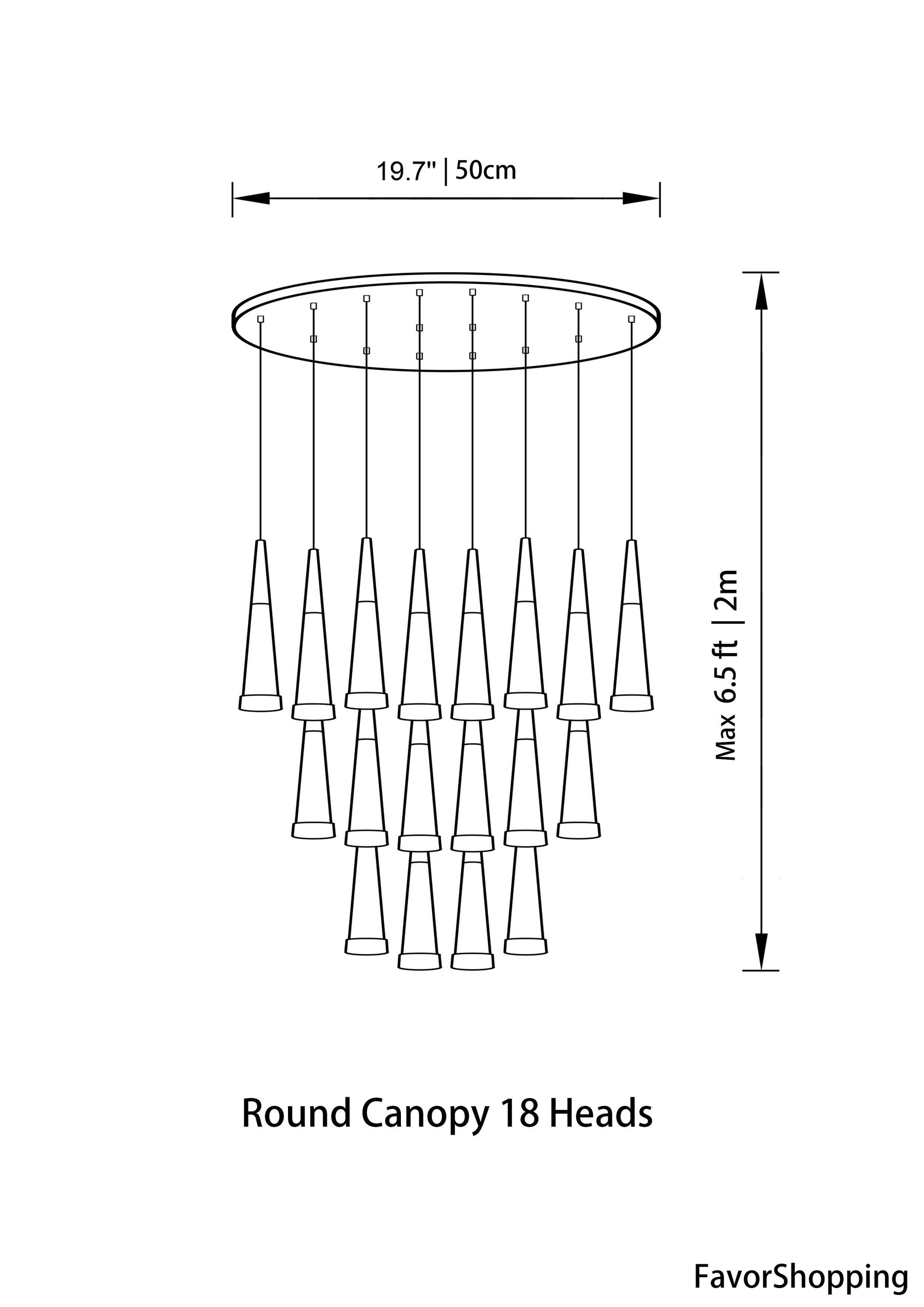 18 Heads : Dia. 19.7''/ 50cm | Max H 9.8ft / 3m