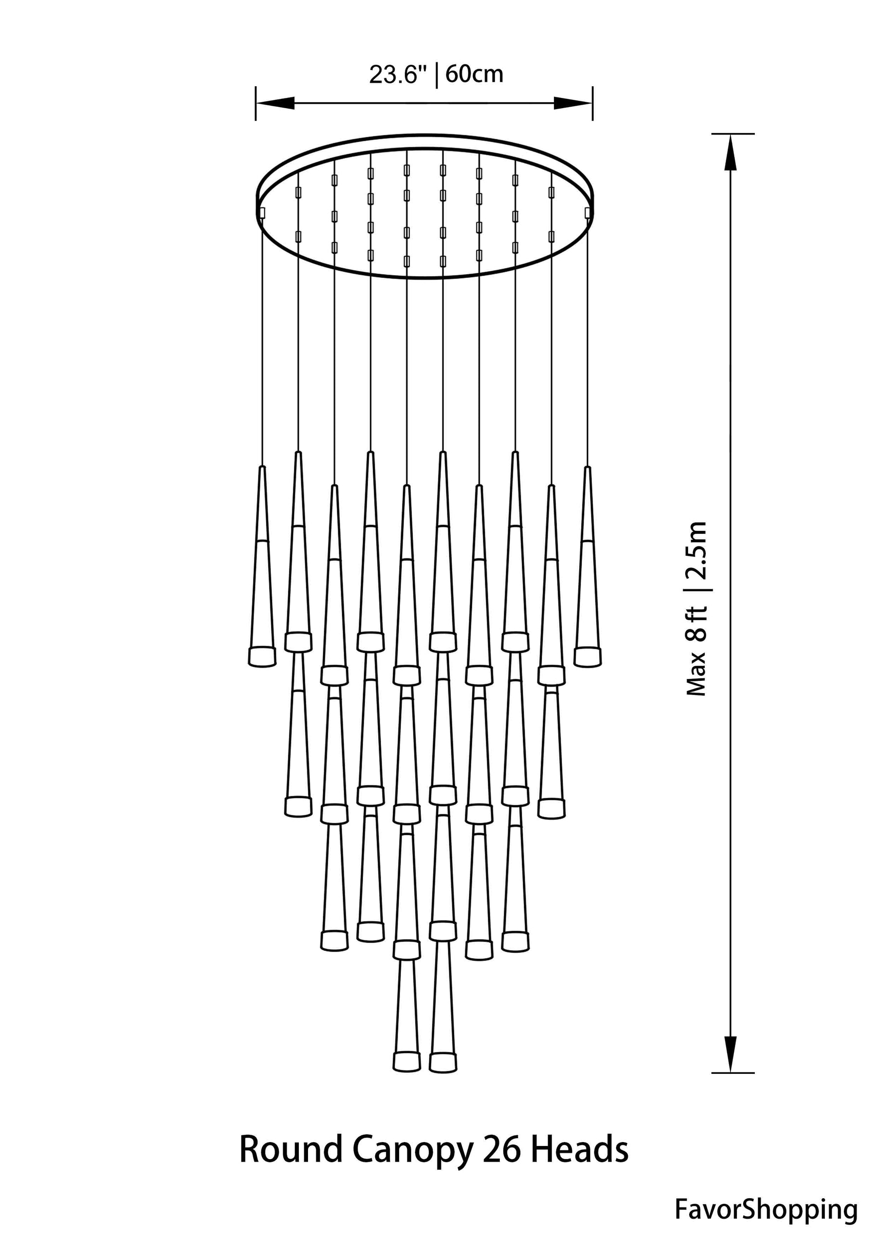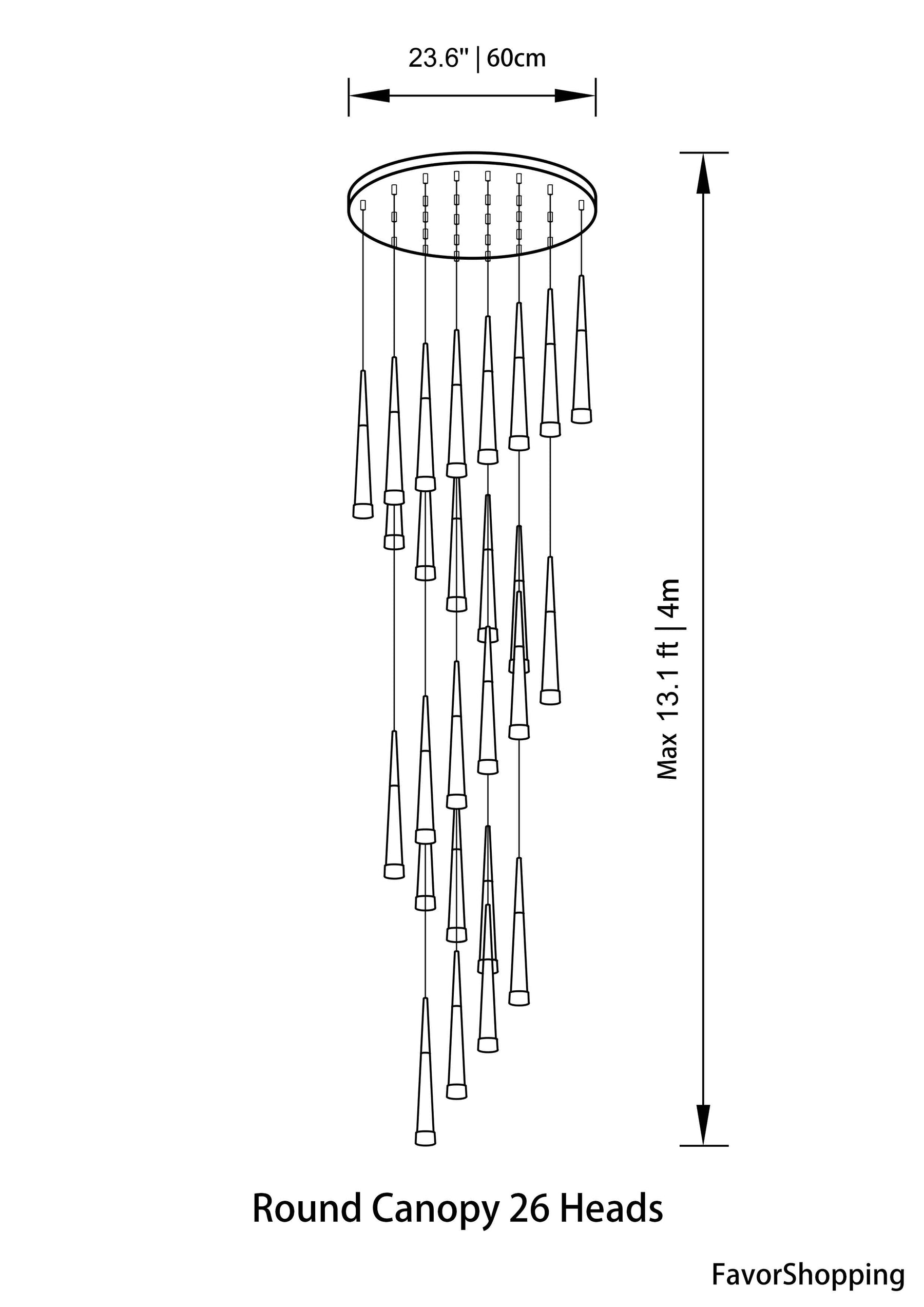 26 Heads : Dia. 23.6''/ 60cm | Max H 13.1ft / 4m