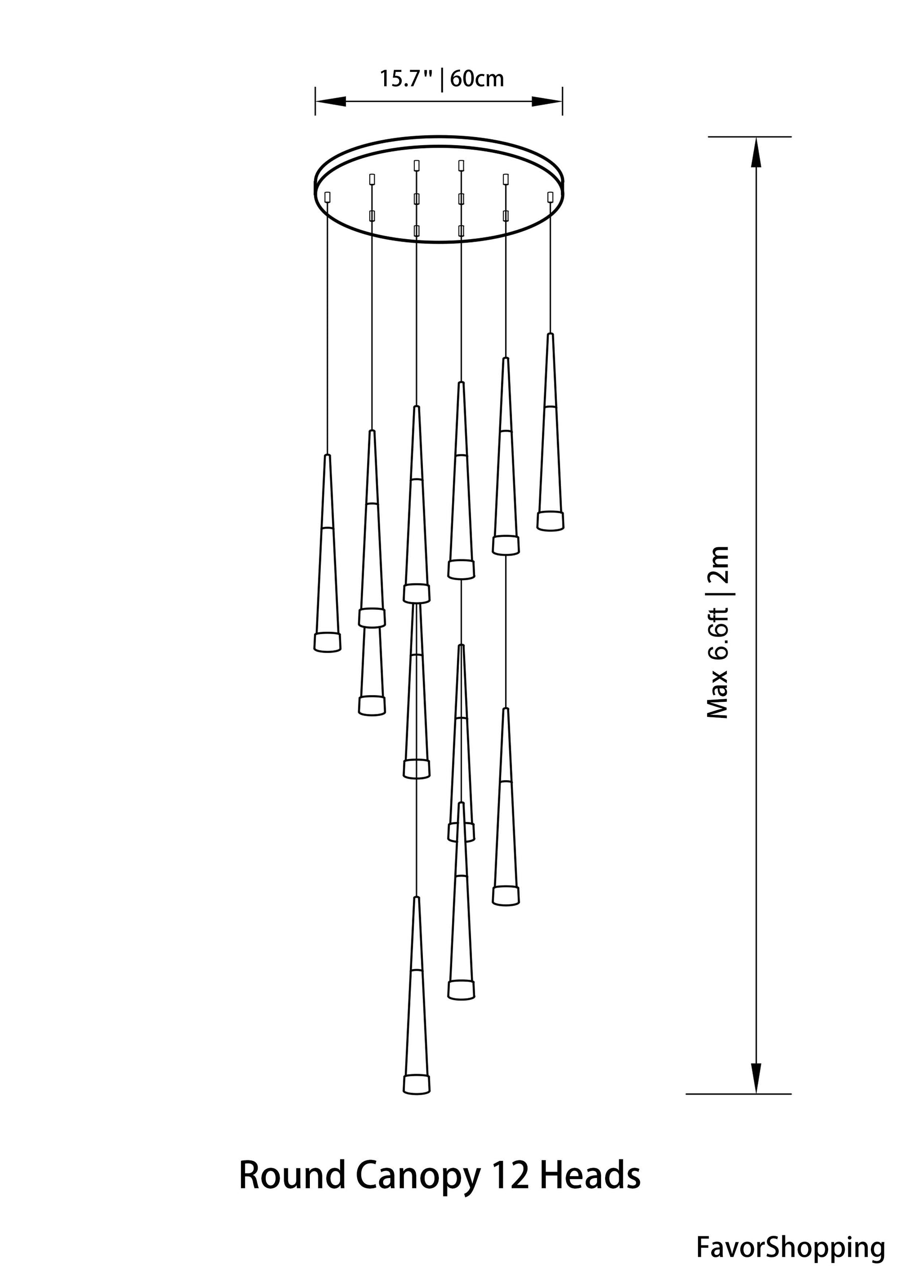 12 Heads : Dia. 15.7''/ 40cm | Max H 6.6ft / 2m